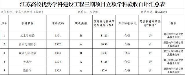 按照苏高建办函[2022]1号《关于做好江苏高校优势学科建设工程三期项目期满验收工作的通知》及补充通知要求,现将我校艺术学理论、音乐与舞蹈学、戏剧与影视学、美术学、设计学五个优势学科验收自评汇总表进行公示。同时,其他验收材料(含各学科验收报告和自评表、总结报告)将以纸质版形式在行政楼202办公室提供现场查询和质疑。