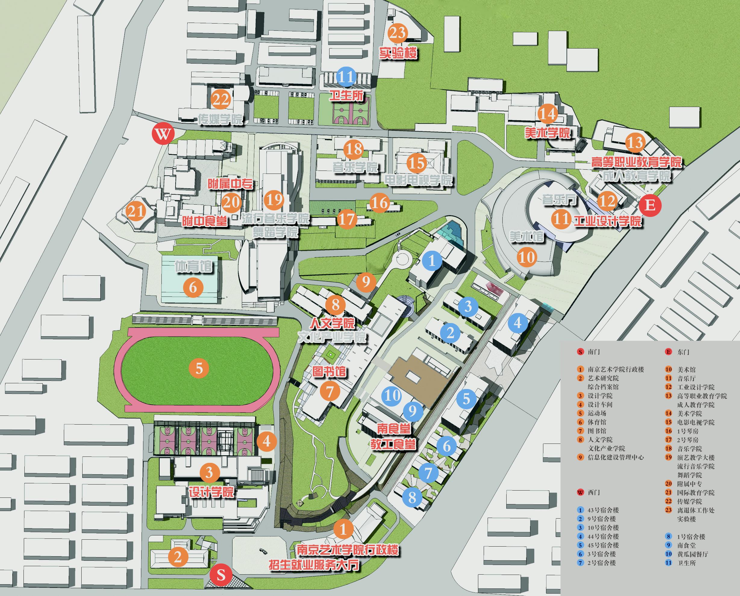 参加艺术设计专业考试的考生根据本人准考证上显示的要求从学校南门(北京西路74号)或东门(虎踞北路15号)进校。