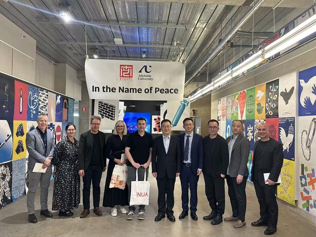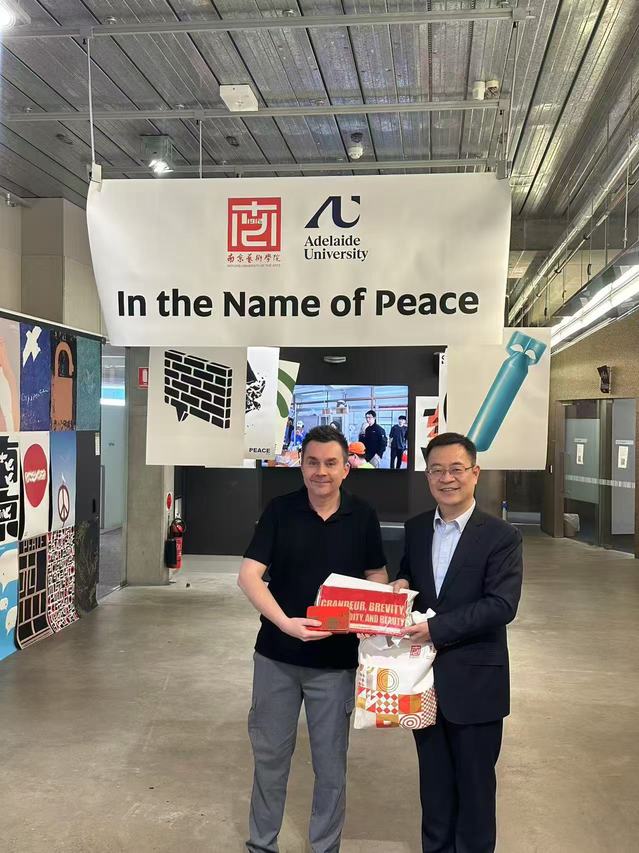 在澳大利亚阿德莱德,俞锋一行受到了阿德莱德大学及南澳大学创意学院的热烈欢迎。与阿德莱德大学副校长Craig Batty教授、艺术与设计学院院长Veronika Kelly教授等,就中外合作办学、师生互访、艺术节共办等议题进行了深入探讨。其间,南艺在阿德莱德大学成功举办了“以和平的名义”南京艺术学院和平海报交流展,这些聚焦“和平”主题的艺术作品,以视觉语言深刻表达了人类对和平发展的共同愿景,获得了参观者的普遍赞誉。阿德莱德大学作为澳大利亚顶尖学府,将与南澳大学合并成立创意艺术学与人文学院的战略举措,也为双方未来合作开辟了更为广阔的空间。