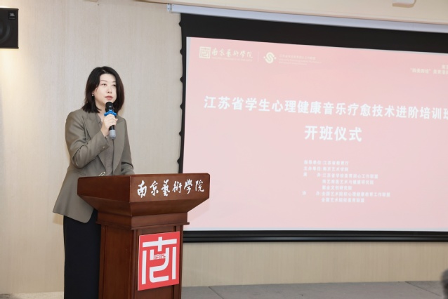 开班仪式上,张丽娜表示,心理健康是学生成长成才的重要基石,事关一代人的全面发展,牵动千家万户的幸福安宁,更关系到国家未来和民族希望。近年来,国家将学生心理健康工作摆在更加突出的位置,作出一系列重要部署。江苏始终紧跟国家要求,坚持把守护学生心理健康作为落实立德树人根本任务的关键环节,积极探索具有地方特色的心理健康教育路径。全省各级各类学校开展了大量富有成效的探索实践,为促进学生健康成长提供了有力支撑。南京艺术学院作为全省唯一综合性艺术院校,多年来立足自身优势特色,持续探索“美育+心育”融合机制,为助推全省心理健康教育事业高质量发展注入了新的动能。特别是去年全省首期学生心理健康音乐疗愈技术培训班的成功举办,培养了一批“懂美育、会心育”的骨干师资,为全省工作积累了宝贵经验。此次进阶培训的开展,既是对前期成果的深化拓展,更标志着全省“美育润心”工作从框架搭建进入内涵提升的新阶段,必将为破解学生心理健康教育重点难点问题提供新方案。