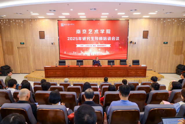 10月17日,我校举行2025年研究生导师培训会议。会议特邀全国艺术专业学位研究生教育指导委员会秘书长宋慧文、江苏省教育厅研究生教育处处长金科、我校资深研究生导师李立新教授作专题报告与经验分享。全体新聘导师、各研究生培养单位分管领导、导师代表、研究生处相关人员参加会议。会议由副校长吕少卿主持。