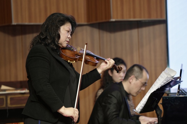 盛小华在活动现场演绎了贝多芬经典作品《G大调第8号小提琴奏鸣曲》。盛小华介绍:“贝多芬在人类音乐史上具有举足轻重的历史地位,《G大调第八小提琴奏鸣曲》是贝多芬在耳疾恶化期间创作,从音乐中我们不难感受到他的焦虑、烦躁,但也能感受到他漫步田间的闲时与逸然。这是一种带着快乐的苦难,更是一种用音乐表达生命的救赎。”盛小华遵从盛中国先生“为非音乐专业学生进行美育”的教诲,一直致力于音乐通识教育,近年来在南京艺术学院围绕“四美四培”的美育育人体系开创“青春的赛道”品牌,旨在以音乐通识教育方式培养未来的“德艺双馨”音乐工作者。