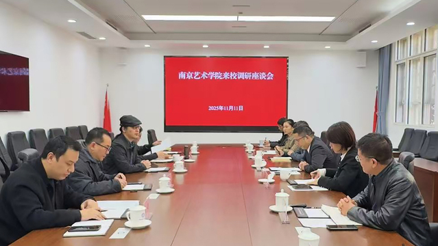 11月11日,副校长吕少卿带队赴中国科学技术大学围绕艺科融合与学科交叉主题开展调研。原副校长詹和平,研究生处处长、设计学院院长蒋杰,以及设计学院艺术与科学创研中心负责人、艺术研究院学科办公室负责人参与调研。 中国科学技术大学党委副书记周丛照,人文与社会科学学院党委书记、副院长李雅清,校团委书记千坤,研究生院副院长宋礼,以及本科生院办公室、先进技术研究院、人文与社会科学学院艺术与科学研究中心相关负责人出席调研座谈会。
