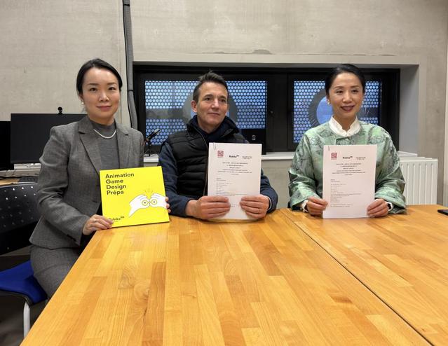 当日下午,代表团与法国卢比卡设计与游戏动画学院(RUBIKA)举行了中外合作办学项目会谈,就开展研究生联合培养项目签署了相关协议,为未来在人才培养、课程共建等领域的合作奠定了基础。同时,代表团还邀请该校国际学生来华参加我校短期交流项目,进行了多方位的招生宣传。
