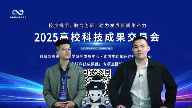 2025高校科技成果交易会于12月15日至17日在广州举行。本次会议由教育部高等学校科学研究发展中心、高校区域技术转移转化中心(粤港澳大湾区)共同主办,以“校企携手、融合创新:助力发展新质生产力”为主题,吸引全国600余所高校携3300余项成果参展。广东省委书记黄坤明,教育部党组书记、部长怀进鹏出席会议。国家发展和改革委员会、科技部、工业和信息化部、财政部、国务院国资委、国家知识产权局有关部门负责人,香港特别行政区政府教育局、澳门特别行政区政府教育及青年发展局负责人,有关高校、企业代表参加会议。我校戏剧与影视学院副教授孙慧牵头的“方寸·奇境”全感VR文旅盲盒项目、博士研究生户鹏飞牵头的“此声童行——AI技术赋能儿童有声陪伴”项目参会。