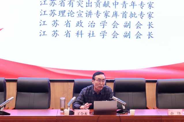 受读书班邀请,中共江苏省委党校(江苏行政学院)科学社会主义教研部主任、江苏省理论宣讲专家库首批专家王金水教授围绕“牢固树立和践行正确的政绩观”主题作专题辅导报告,结合习近平总书记重要讲话精神和丰富案例,从“政绩为谁而树”“树什么样的政绩”“靠什么树政绩”三个维度,深入解读了树立和践行正确政绩观的重大意义、内在要求和实践路径。