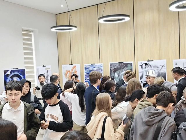 本次展览以“字载同心·丝路回响”为主题,设“字道尊源”“字造万象”“字载其道”“字汇丝路”四大板块,展出南艺设计学院学子创作的100件优秀海报作品。观众们或驻足细品汉字的演变风骨,或举手机定格精巧设计;青年们在“字汇丝路”展区陶醉于融合丝路元素的作品,孩子们则在“字造万象”中兴奋地描摹字形,笑得灿烂。