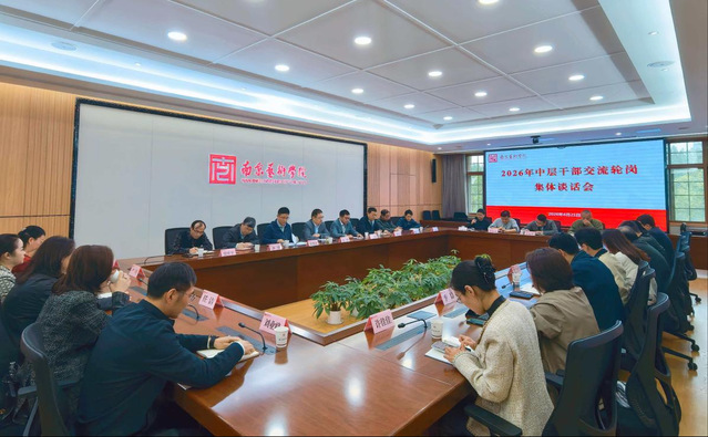 4月21日上午,我校召开2026年中层干部交流轮岗集体谈话会。校党委书记俞锋出席会议并讲话,党委副书记李向民主持会议,党委常委、组织部部长、统战部部长、人事处处长宋德泳宣读党委任免决定。全体涉及交流轮岗的中层干部参加会议。