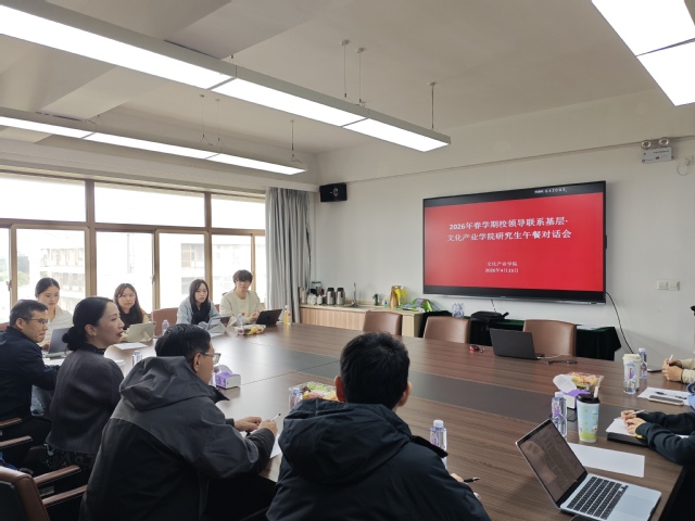 调研期间,张捷还与文化产业学院研究生进行午餐对话会,围绕教育教学、科研实践等与研究生同学代表进行交流。张捷表示,学校高度重视研究生教育教学,多措并举推动研究生人才培养提质增效,下一步将更加重视研究生科研学术训练与实践能力培养双抓双促。