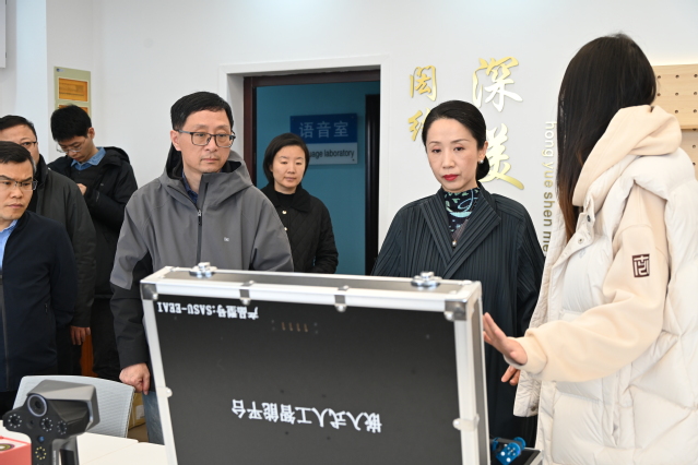 调研中,张捷实地考察文化艺术大数据实验室等平台建设及运行情况,观摩师生团队数据采集和分析与可视化系统展示,听取在教学科研、校企合作、人才培养和资政服务等方面工作介绍,并围绕发展方向、重点任务、改革路径等与师生团队进行深入交流。