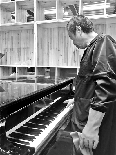 当时并不是吴爷爷第一次接触钢琴。孙女在合肥艺术学校上学时,他在学校的剧场打扫卫生,就见过并偷偷弹过钢琴。“听小孩们和老师弹得真是好听哦,等他们放学了,我就一个人偷偷地弹一会,自己摸索着认琴键,分不清,就在上面轻轻标上‘哆来咪发嗦拉西’,然后再赶快擦掉。”
