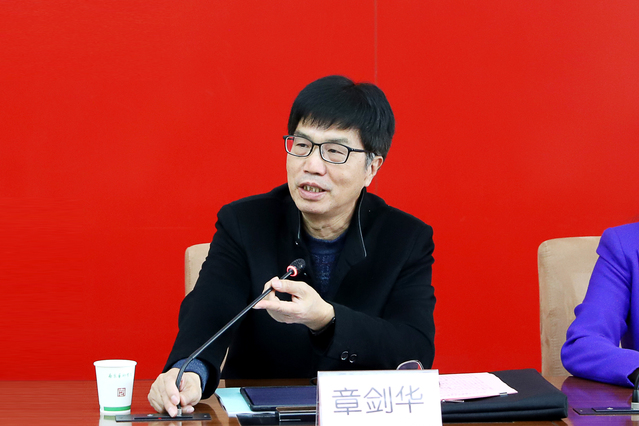 章剑华从剧本取材、题材定位、综合特色、打造目标、南艺综合原创优势等方面介绍了剧目创作背景,对剧目打造提出了三点建议:要全过程创作,全方位创新,在创排中不断完善剧本;要将内容和形式融为一体;要在编创中碰撞,教学相长,校内外合作单位要协作共赢,争取更多的协作发展机会。