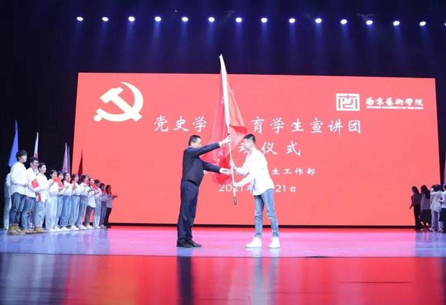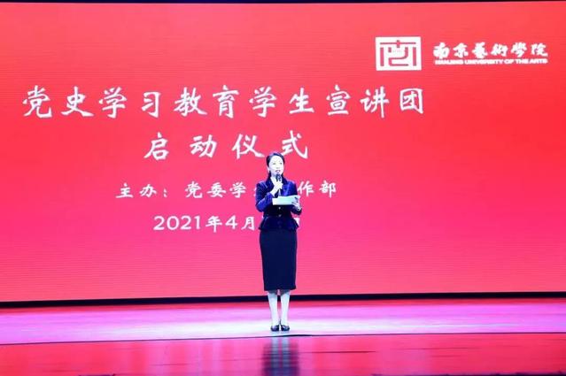4月21日下午,在学生党史宣讲团成员、影视学院潘嵘同学激昂的演讲声中,南京艺术学院党史学习教育学生宣讲团成立仪式拉开帷幕。