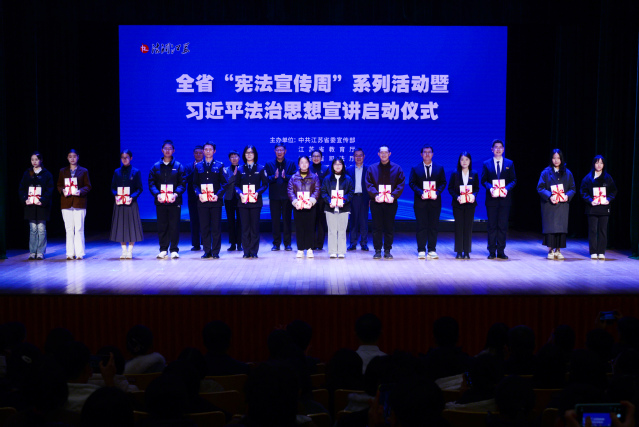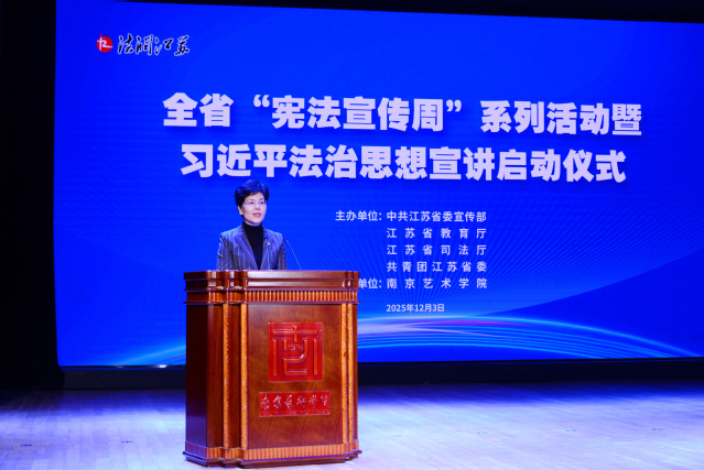 12月3日,由江苏省委宣传部、省司法厅、省教育厅、共青团省委联合主办的全省“宪法宣传周”系列活动暨习近平法治思想宣讲启动仪式在我校举行。省委常委、省委宣传部部长、省委全面依法治省委员会守法普法协调小组组长徐缨出席活动并讲话。