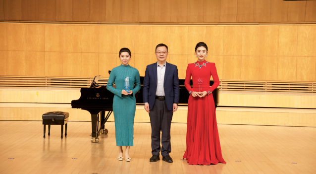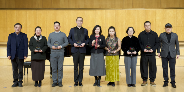 张鲤鲤、副校长李彤为“南京艺术学院优秀艺术指导奖”获得者和“南京艺术学院优秀指导教师奖”获得者颁奖。