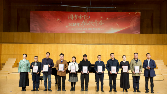 12月8日下午,“圆梦金钟挑战青春”——南京艺术学院2025年艺创创新突出成果展演暨表彰大会于学校音乐厅举行。江苏省文化和旅游厅党组成员、副厅长李川,江苏省教育厅二级巡视员张鲤鲤,江苏省文联党组成员、副主席、书记处书记黄俊,江苏省音乐家协会主席杜小甦,江苏省文化和旅游厅艺术处处长孙蓓,共青团江苏省委高校工作部部长卜路,江苏省文化和旅游厅艺术处副处长沈旭东,江苏省音乐家协会副主席赵彤;全体在校校领导、中层正职出席大会。各学院艺创工作分管负责人、党组织副书记、分团委负责人、艺创秘书、师生代表参加活动。大会对在各类艺术竞赛、创新实践、教学指导中表现突出的师生进行表彰。我校党委书记俞锋为“南京艺术学院艺术卓越贡献奖”获得者马鑫芮和“南京艺术学院青年卓越贡献奖”获得者单雯颁奖,表彰二人在各自领域取得的卓越成就。