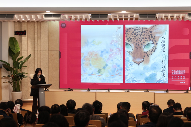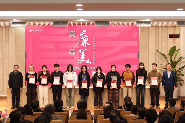 俞锋在致辞中指出,在南艺建校113周年与国际反腐败日的特殊节点,举办“崇廉尚美”主题海报漫画创作展意义深远。作为社会主义先进文化的重要组成部分,廉洁文化是推进党的自我革命的基础性工程,是落实全面从严治党、践行立德树人使命的关键支撑。南艺始终秉承“闳约深美”的校训精神,践行“以美育人、以美化人、以美培元”的教育理念,引导师生在美的创造与熏陶中筑牢廉洁底线、涵养清风正气。俞锋表示,参展作品以艺术语言实现廉洁之美、道德之美与艺术之美的融合融通,是师生专业素养与时代担当的集中体现,也是传播社会主义核心价值观的有益探索。他希望全体师生以此次展览为契机,坚守人民立场,将个人艺术追求融入时代发展洪流,创作更多有筋骨、有温度、有力量的精品力作,让廉洁文化在艺术的滋养下焕发出更加蓬勃的生机与活力,为繁荣发展社会主义文化、推进文化强国建设做出新的更大贡献!他希望广大师生在欣赏艺术之美的同时,有所思、有所悟、有所行,共同筑牢拒腐防变的思想防线。